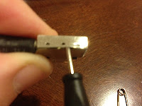 When the black is fully exposed you will again see little plastic tabs on the side.  Using a safety pin lift these tabs and push them down (its ok if they come off entirely).  You want to see the exposed metal from the pins where the tabs used to be.  Do this for all the tabs on both sides of the cable.